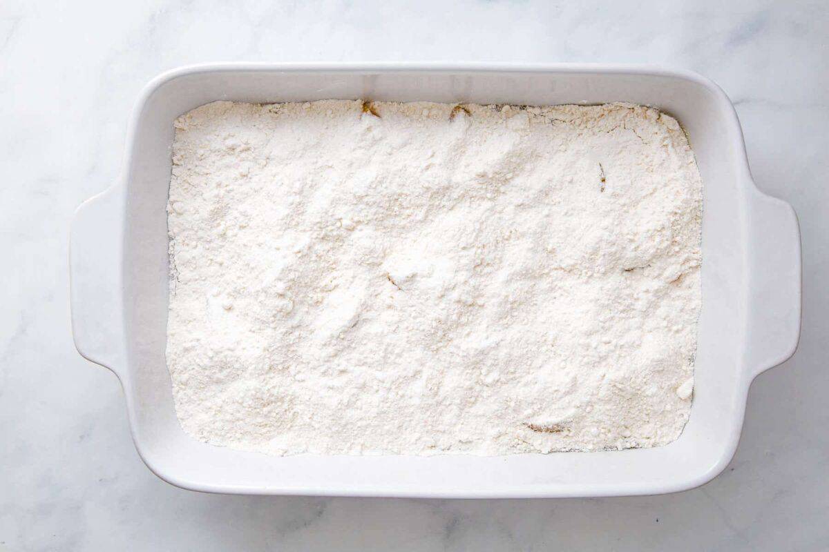 To get an extra rich and moist cake, stir in two extra egg yolks along with the eggs the recipe calls for. - Add sugar and flour to the dry mix.