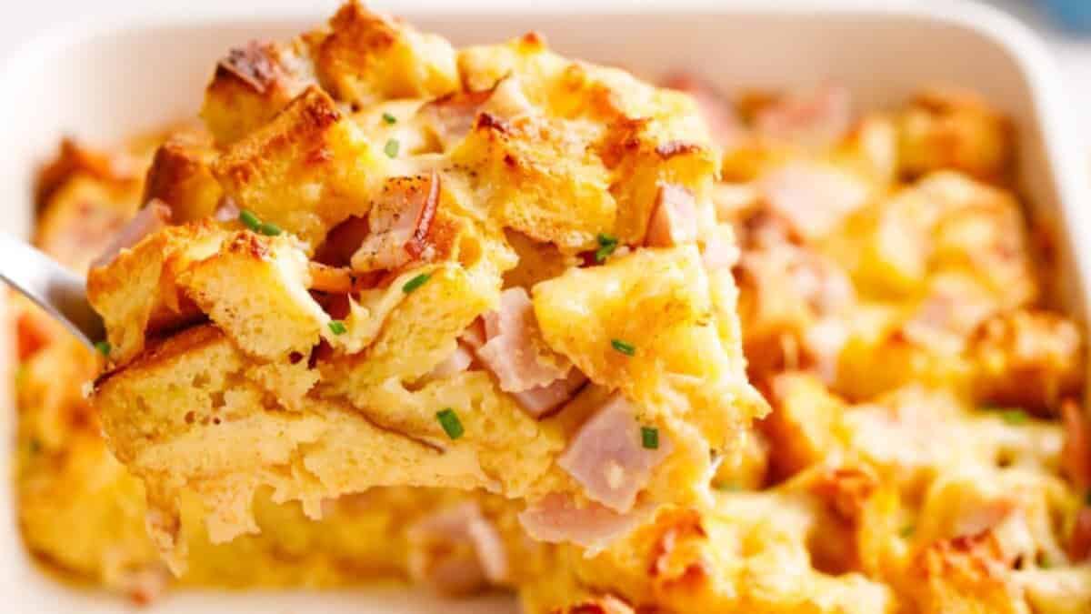 With one bite of this ham and cheese breakfast casserole, you’ll understand why the ingredients are always paired. The classic combo mixes with eggs and fluffy bread to make a breakfast casserole that is worth going back to for seconds.