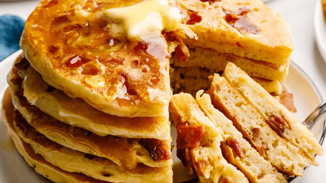 Bacon pancakes are the ultimate sweet-and-savory breakfast option! Crispy bacon adds loads of smoky flavor to thick, fluffy buttermilk pancakes—just add a generous pour of maple syrup and serve!