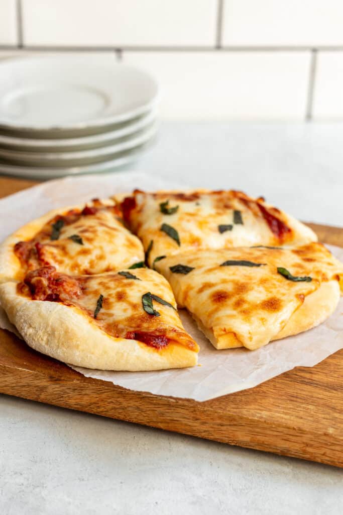 Wrap any leftover pizza tightly in plastic wrap or store it in an airtight container in the refrigerator. It’ll be good for 3-4 days. To reheat, place the pizza on a plate and microwave it for 1 minute, or heat it in the air fryer at 375ºF for 2 minutes. (You can totally eat it cold too. Maybe even for breakfast!)