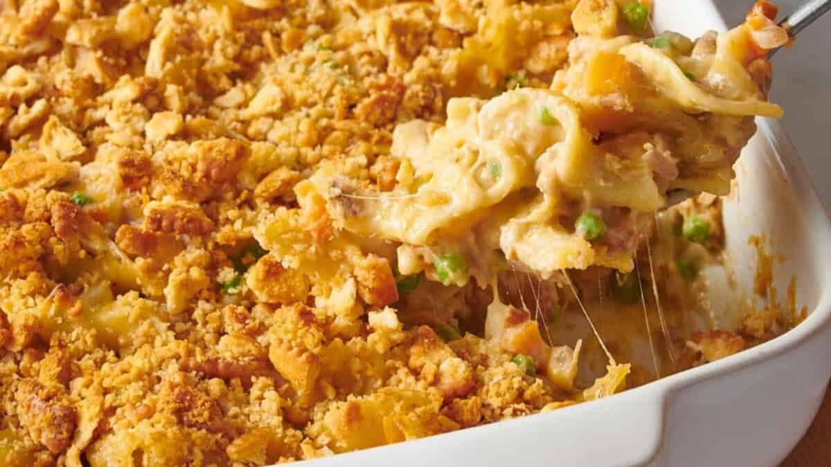 This cheesy tuna casserole is made with tender egg noodles covered in a rich, homemade sauce that’s loaded with cheese. The crunchy cracker topping is the perfect finishing touch!