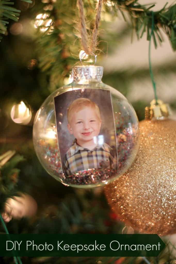 I love these so much! They’re simple to make and the kids love seeing their faces on the tree and how they’ve changed through the year. I just take one of their small school photos,  a little glitter and place in  a glass ornament you can find in craft store. Add a some string or a little ribbon and you’ve got an adorable keepsake!