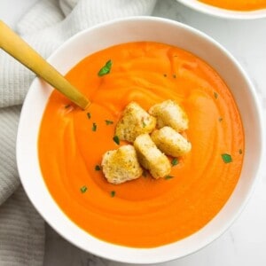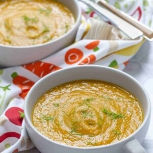I love making seasonal soups, and this recipe is definitely perfect for the fall. However, it’s so incredible, I find myself making it all year long. The creamy broth is silky smooth thanks to coconut milk and vegetable broth. The flavor is pretty unbeatable!