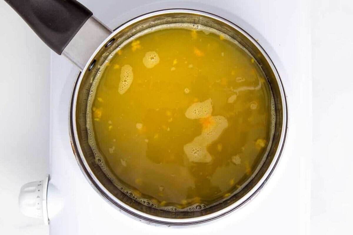 - In a small pot over medium high heat, add the orange juice, honey, and orange zest. Whisk together and bring to a simmer. Reduce heat to low and continue to cook for another 4 to 5 minutes. Remove from the heat, add the vanilla, then let cool to room temperature while preparing the fruit mixture.¾ cup orange juice, ¼ cup honey, 1 Tablespoon orange zest, 1 teaspoon vanilla extract