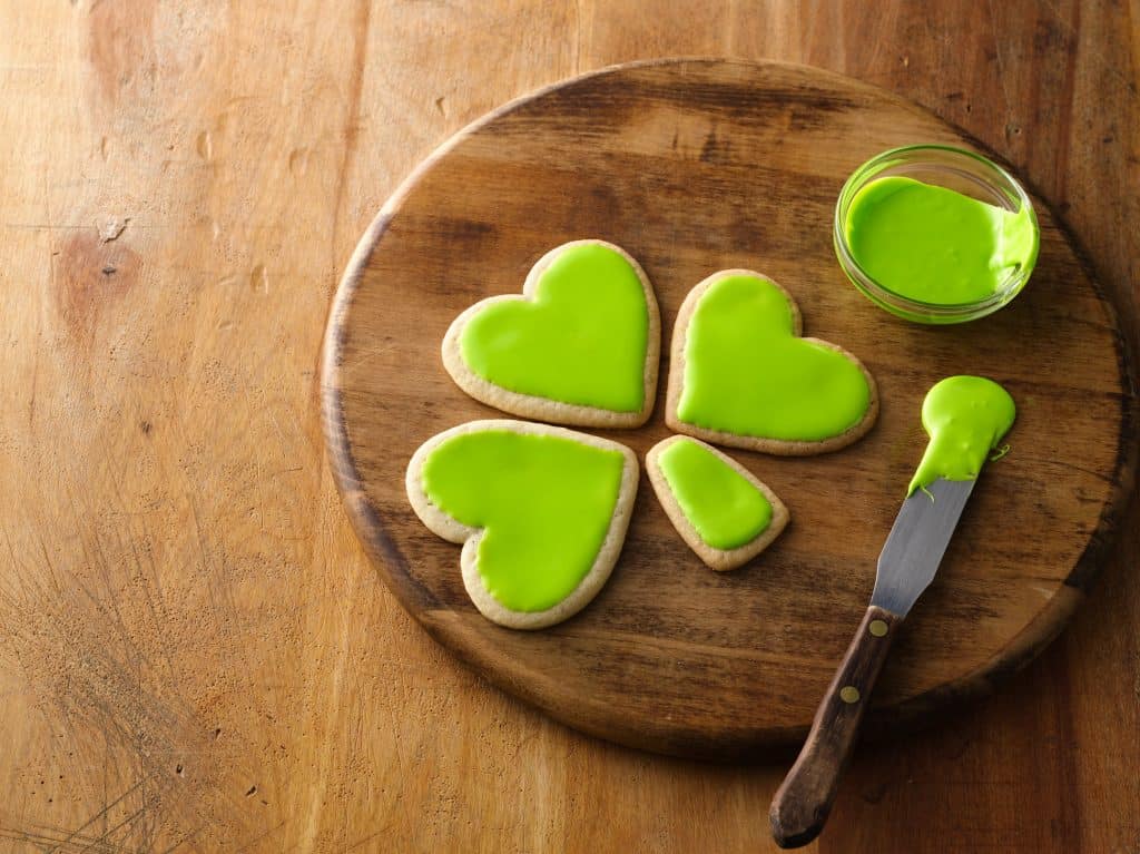 Put a St. Patty’s day twist on homemade soft pretzels by shaping them into shamrocks. Green mustard as a dip adds an extra-festive touch.