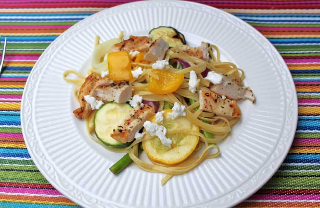 This simple and delicious Grilled Chicken and Vegetable Pasta will make even the pickiest eaters happy! Linguine is tossed with tender vegetables and juicy chicken to make a quick summer dinner.