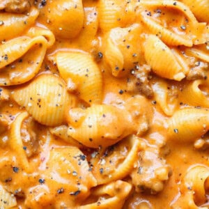 If you are a big creamy pasta fan, this creamy beef and shells will be a fast favorite. The creamy sauce lives up to its reputation, giving the shells and ground beef a perfect partner for this epic meal.