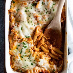 Baked ziti is a pasta bake recipe that’s sure to be a hit with the whole family! It’s packed with pasta, cheese, and a meaty marinara sauce, and it’s perfect for assembling in advance for an easy weeknight dinner.