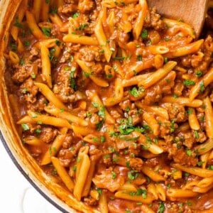 Sloppy Joe meets pasta in this mashup of two classic dishes. It’s the perfect dish to make for your family any night of the week. Bonus! It’s way neater to eat than a traditional Sloppy Joe, too.