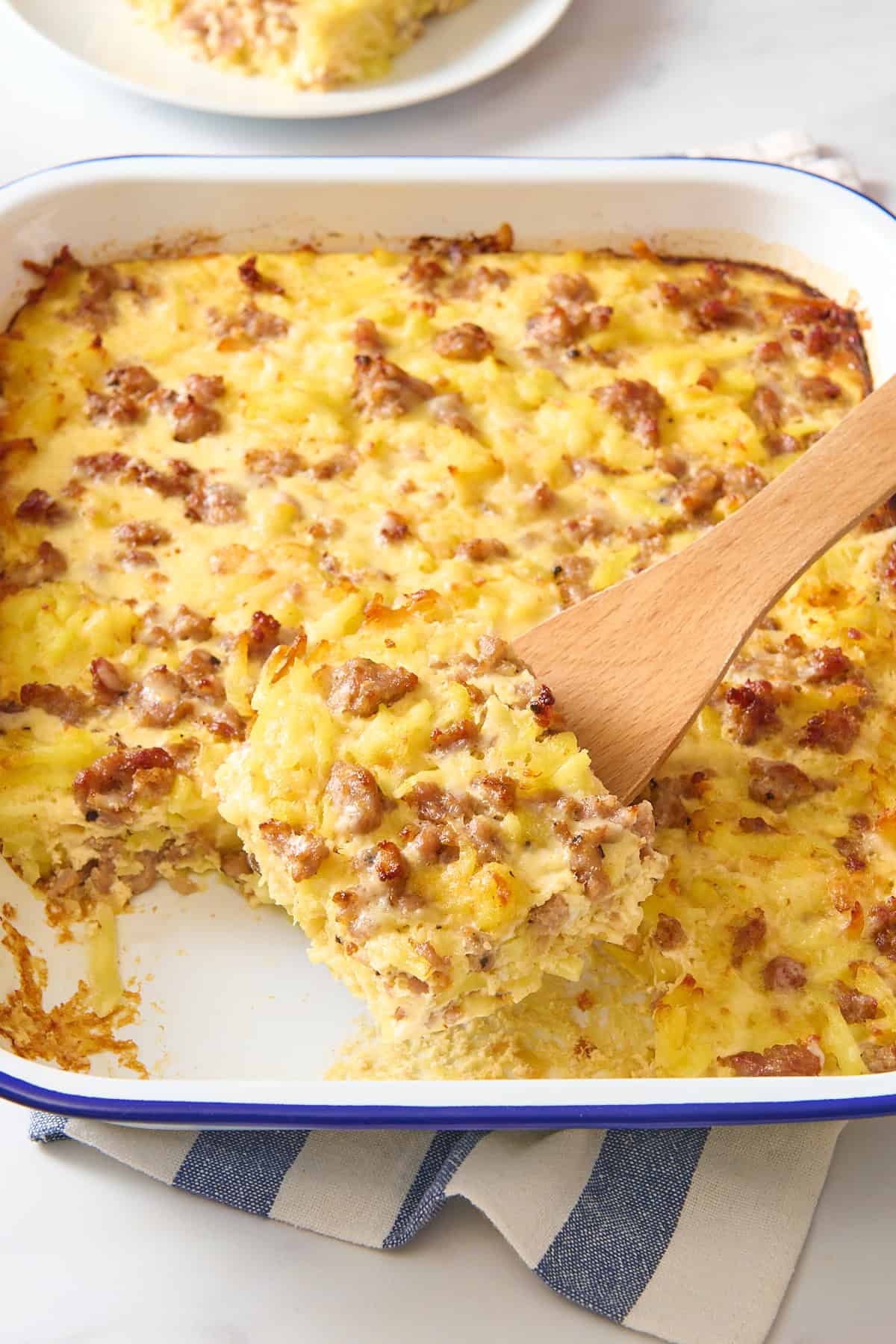 If your hashbrown egg bake is soggy, just keep cooking it. Ovens can vary and sometimes it takes a bit longer for the eggs to set. Also keep in mind that the hashbrowns in this hashbrown casserole won’t be crispy because they’re not being fried in a skillet, but the top and edges will be.
