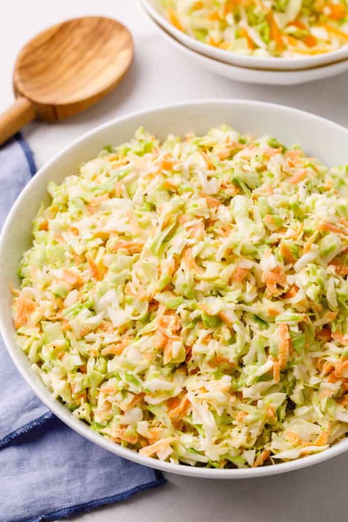 Refrigerate the coleslaw for 6 to 8 hours (or overnight) before serving. This helps all the flavors blend together!