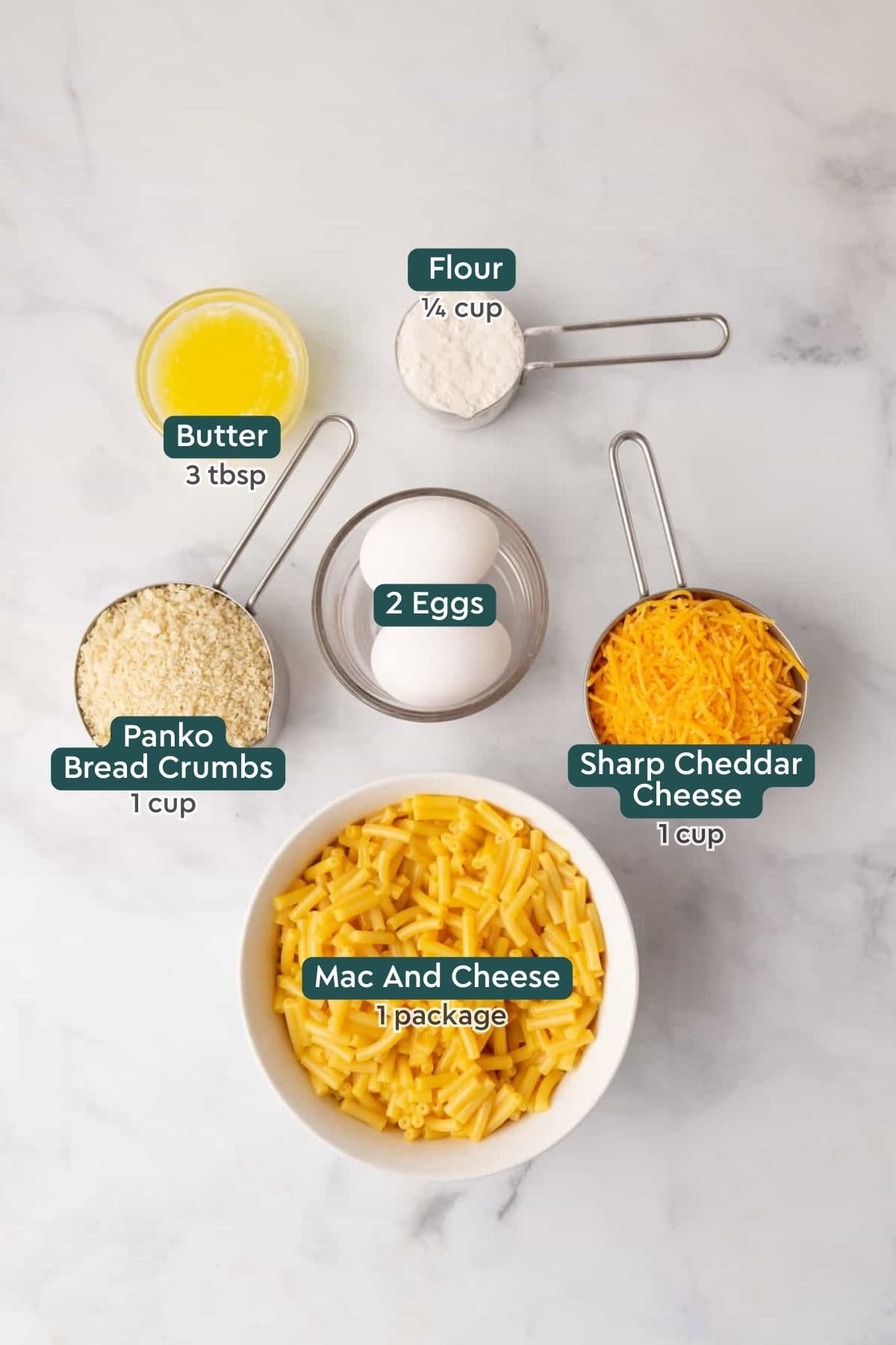 - Panko bread crumbs – Panko is better than regular breadcrumbs here because it gives these mac and cheese bites a crispy exterior without the need for frying.