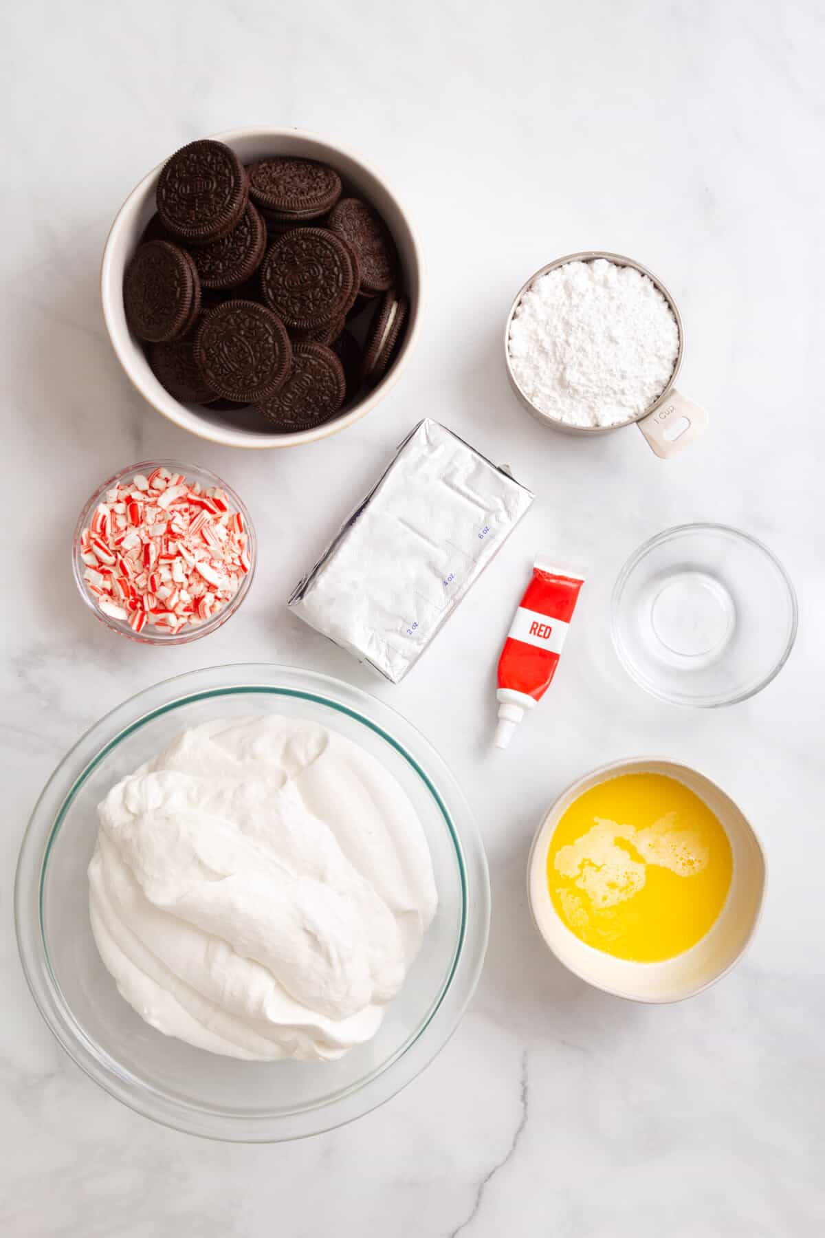 - Oreo cookies – I recommend using traditional chocolate Oreos, but you can also opt for fun flavored varieties.