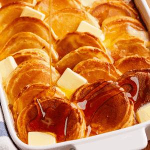 Wake up to fluffy pancakes with this easy overnight pancake casserole recipe! Perfect for busy mornings or special occasions, this casserole is loaded with flavor and can be easily customized with your favorite toppings!