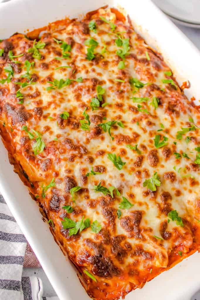 Stuffed shells are one of those back pocket dinner recipes you’re always ready to whip out on short notice. If you’re doing meal planning and have a gap to fill in, you know you can count on stuffed shells—it’s easy, you can assemble it in advance, and it’s always a winner. Who doesn’t love a super cheesy pasta bake, right?! Stuffed shells, along with Baked Spaghetti, is one of my favorites!