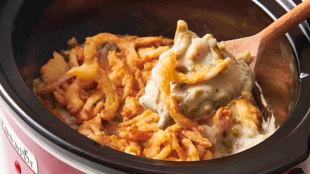 This Slow Cooker Green Bean Casserole is a hands‑off, creamy, comforting side you can set and forget in the crockpot, perfect for any time you want a crowd‑pleasing veggie dish without baking! It delivers classic flavor with minimal effort, frees up your oven, and it’s still got that irresistible crispy onion topping.