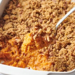 Upgrade your classic sweet potato casserole with this gorgeous copycat Paula Deen Sweet Potato Casserole recipe instead! Featuring a fluffy base of sweet potatoes, it uses a toasted nut topping instead of marshmallows for an elevated recipe that’s picture-perfect and easy to make.