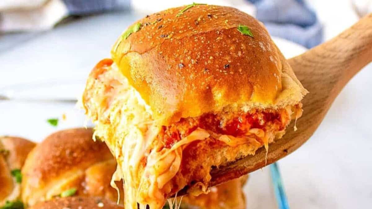 Forget ordering pizza and missing the biggest play of the game in the process. Just make these pizza sliders instead. The gooey sliders are loaded up with cheese and sauce and served on a sweet Hawaiian roll. Feel free to add your favorite toppings inside the sliders, like pepperoni, meatballs, peppers, and onions.