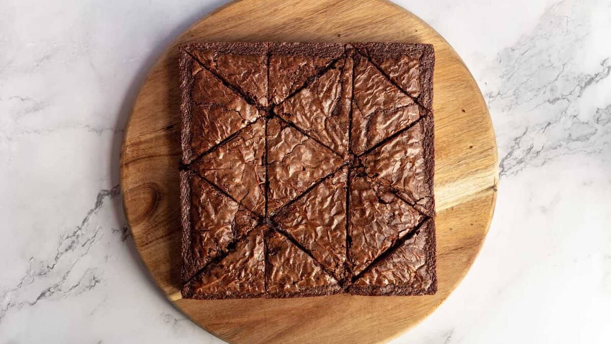 - Cool and cut: Let the brownies cool completely. Then, gently lift them out of the pan using the foil. Cut the cooled brownies into 3 even rows, and cut each row into 5 triangles.