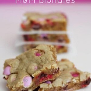 Easy to make and always delicious – make sure to add this Valentine M&M Blondie  recipe to your recipe binder! And then try these Chocolate Chip Peanut Butter Blondies or Monster Cookies, which are also made with M&Ms!
