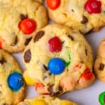 Beat to combine, then fold in chocolate chips and M&M’s.