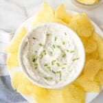 Chip dip is a party staple! Consider this your classic pairing for potato chips—a garlicky, oniony creamy dip flavored with a variety of herbs. Best of all, it's super easy to make for all those last-minute get-togethers!