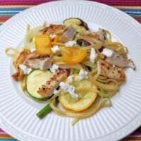 This simple and delicious Grilled Chicken and Vegetable Pasta will make even the pickiest eaters happy! Linguine is tossed with tender vegetables and juicy chicken to make a quick summer dinner.