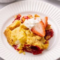 You only need 4 simple ingredients to make this unbelievably delicious Strawberry Cheesecake Dump Cake recipe! It's a summertime favorite.
